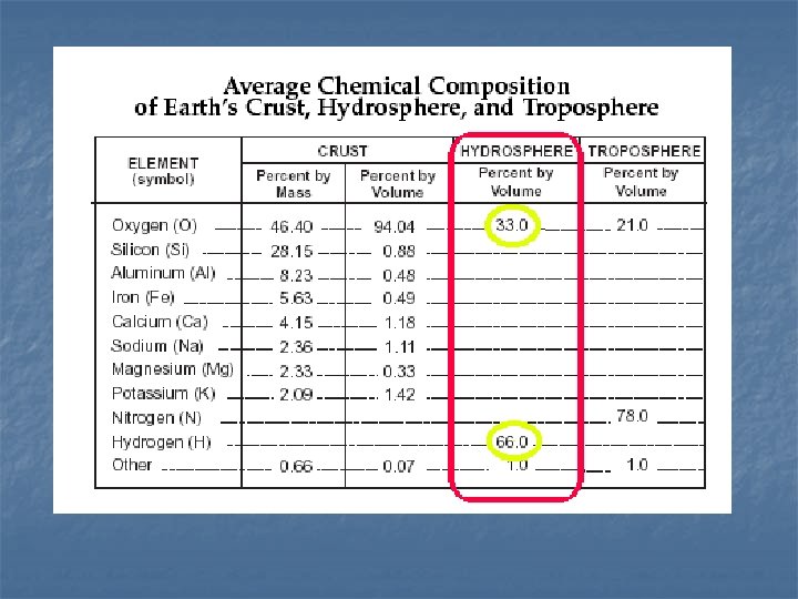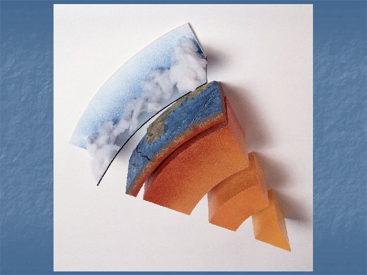 Hydrosphere cont. n The hydrosphere is relatively thin, averaging about 3. 8 km in thickness. n Composed of mostly hydrogen and oxygen, with some varying amounts of dissolved gases and suspended solids.