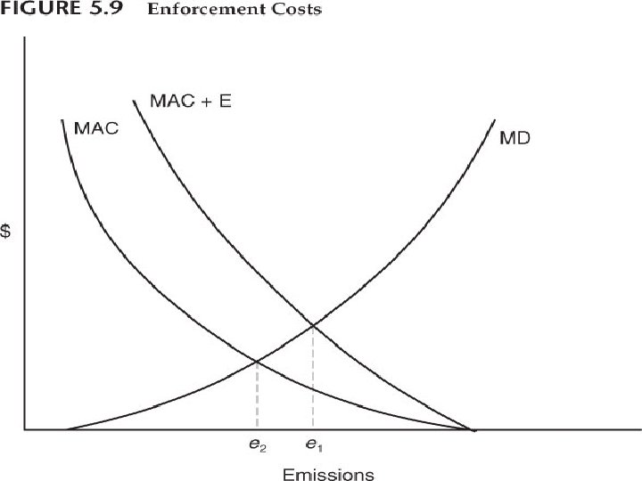 Enforcement Costs n n The addition of enforcement costs moves the efficient level of emissions to the right of where it would be if they were zero. This shows the vital importance of having good enforcement technology because lower marginal enforcement costs would move MAC + E closer to MAC, decreasing the efficient emission level.