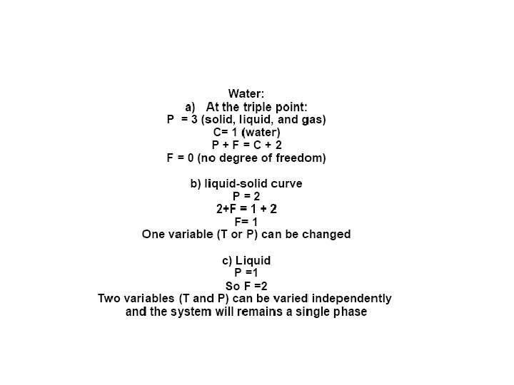 Phase Rule F=C-P+2 C = number of component