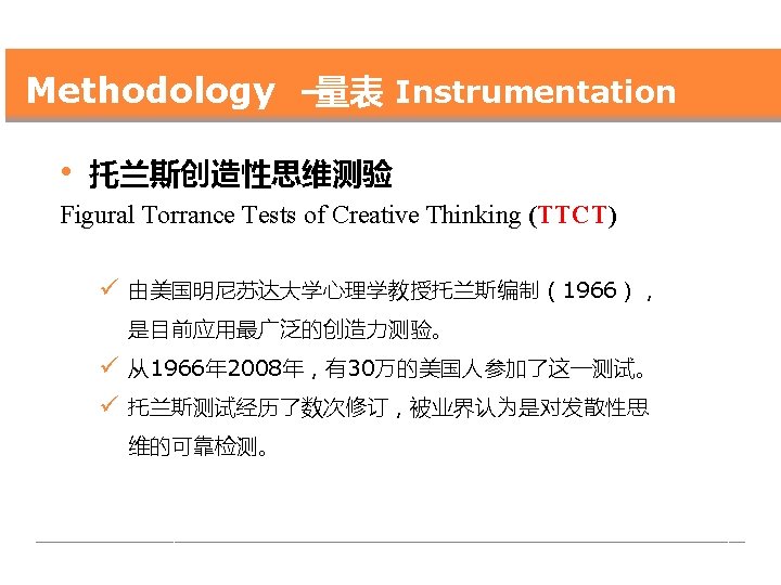 Methodology — 量表 Instrumentation • 托兰斯创造性思维测验 Figural Torrance Tests of Creative Thinking (TTCT)