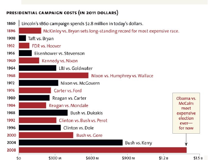 Money plays a key role in politics, but it presents serious problems to democratic governments. The amount of money spent in races varies, but presidential campaigns collect and spend the most. Parties and their candidates draw their money from two basic sources. Most campaign money comes from private sources, including individuals, families, candidates themselves, and political action committees (PACs). PACs are the political arms of special-interest groups.
