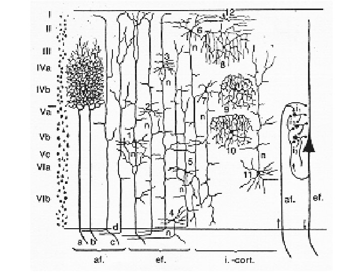 Cortex Structure Layer I I Molecular layer Molekularschicht • Apical dendrites of pyramidal cells • Axons of stellate cells (parallel to cortex surface) • Few cell bodies • Local (intracortical) information exchange