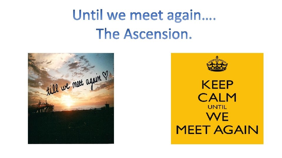 Ascension Day marks a very strange event: Jesus was taken back to heaven, so you would think his disciples would be sad and devastated at his leaving them once more. Instead we read in Luke 24: 52 that once he’d gone, ‘they worshipped him and returned to Jerusalem very happy’. This assembly or talk explores the idea that this good-bye was a happy good-bye, not a sad one because his friends knew he was with them even though he’d gone. Watch me!