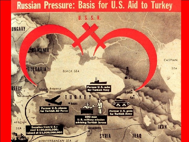 The U. S. created a foreign policy called Containment to stop Soviet influence & the spread of communism When the USSR began tofirm, pressure Greece & Turkey “A long-term, patient but & vigilant containment to turn communist, the U. S. created the force of Russian expansionist policies…will eventually Truman promising & military the. Doctrine, USSR to live in peaceeconomic with the West” help to any nation threatened by George communism —Secretary of State, Marshall T= The Truman Doctrine worked & neither Greece nor Turkey fell to communism