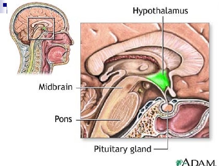 Endocrine Glands: Pituitary n Pituitary Gland aka Hypophysis: The “master gland: of the endocrine system, controlled by the hypothalamus. Two parts: ¨ Anterior Pituitary Gland: aka Adenohypophysis: ¨ Posterior Pituitary Gland: aka Neurohypophysis
