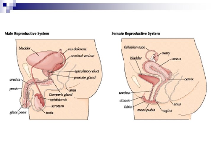 Gonads n Gonads: The ovaries (females) and testes (males). ¨ Ovaries: Produces estrogen, progesterone, inhibin, & relaxin. n n n Mammary gland production, the menstrual cycle, and pregnancy are maintained by progesterone, estrogen, FSH, & LH. Inhibin inhibits the secretion of FSH. Relaxin is important for delivery. ¨ Testes: Produce testosterone, which regulates the production of sperm & helps develop masculine features (facial hair, deep voice, etc. )