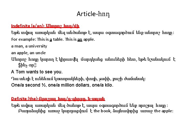 Present tense verb to be բայի ներկա ժամանակաձև Affirmative- հաստատական Full form I am a student. You are a student. He is a student. She is a student. It is a school. We are students. You are students. They are students. Contraction I’m You’re He’s She’s It’s We’re You’re They’re