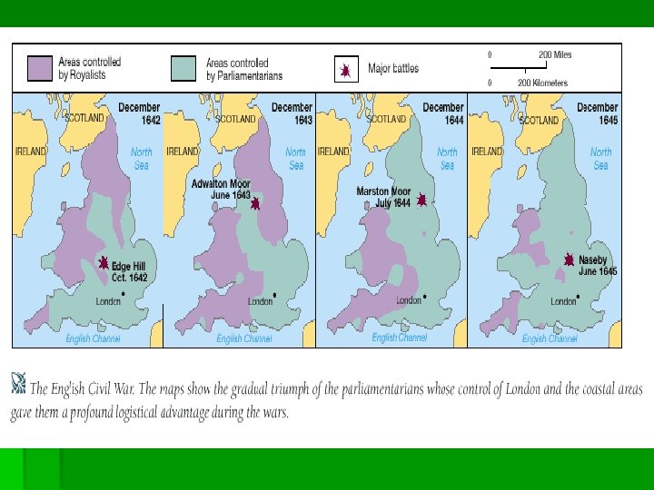 Oliver Cromwell and the New Model Army § Parliament forms a professional group of soldiers in February of 1645 § Very well disciplined § Promotions based on merit, not class § Most members had strong Puritan values § No drinking, cussing, women, gambling, etc. § Cavaliers eventually beaten by New Model Army