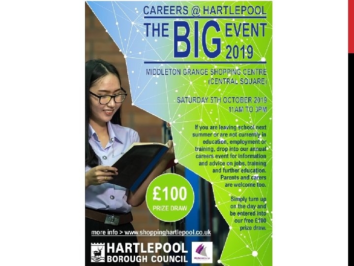 Tuesday 5 th November 2019 St Anne's Hall Is during school hours and is your chance to meet and talk to people about your career plans. Over 20 colleges and training providers will be in attendance. This careers event is designed to provide information relating to education, training and apprenticeship opportunities that are available to young people within Hartlepool post 16 and beyond. U Band P 2 – Mixed Band Subjects Students to come directly to hall after Period 1 X Band P 3 – Mixed Band Subjects Students to come directly to hall after break