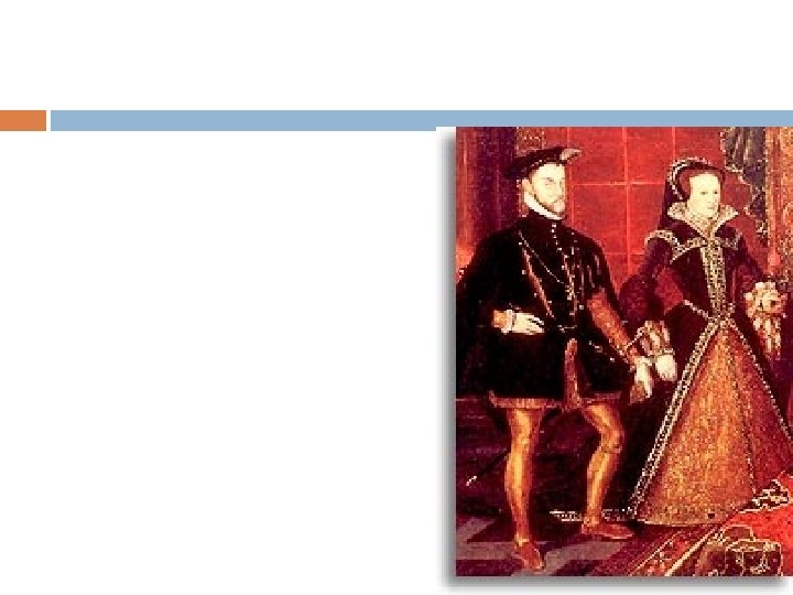 Mary I (r. 1553 -1558) Strongly Catholic Moves church back towards Catholicism Marries Philip II of Spain Executes over 300 protestant leaders
