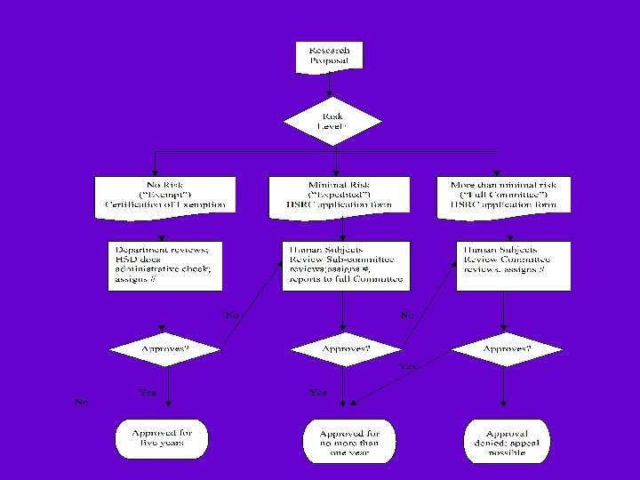 Compliance · Know the categories of research ¨ “exempt” (no risk) ~ reviewed by Department ~ use “Certificate of Exemption” form ¨ “expeditable” (minimal risk) ~ reviewed by HSRC sub-committee ~ use regular HSRC application form ¨ full IRB review (more than minimal risk) ~ reviewed by HSRC at convened meeting ~ use HSRC application form