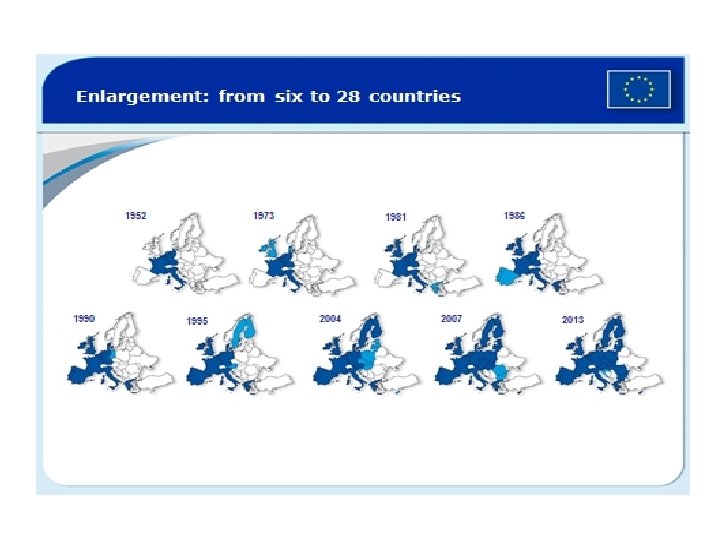 The Common Market • The single most important thin the EU has done is to integrate many national markets into one. • Customs free are surrounded by a common tariff within which goods can move freely and where there is a CAP…. Common Agr. Policy • The adoption of the Euro and the Economic and Monetary Union provided the EU with a central bank and a strong currency