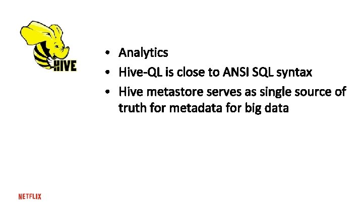 Event Data Cloud apps Suro/Kaf ka Ursula 15 min AWS S 3 Dimension Data Cassandra SS Tables Daily Aegisthus