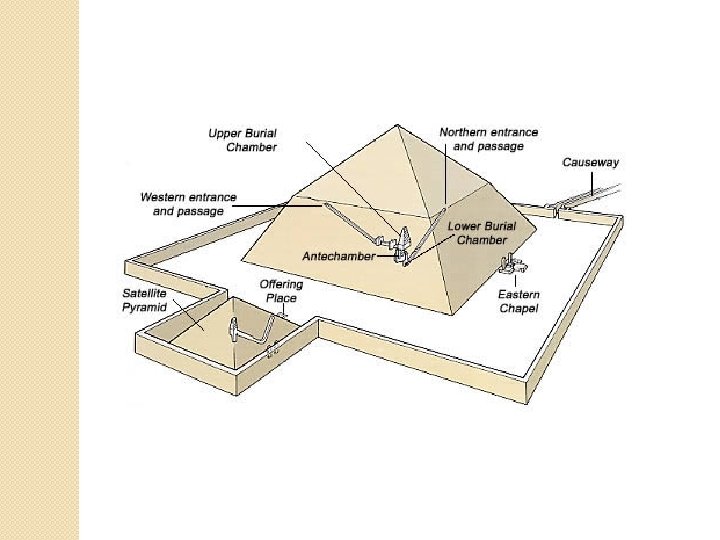 Snefru’s Red Pyramid �First true pyramid ◦ 3 rd time’s a charm for Snefru! �Built on a smaller scale and at a 43 degree angle to reduce the time of construction �Mortuary chapel was now moved to eastern side from traditional northern side