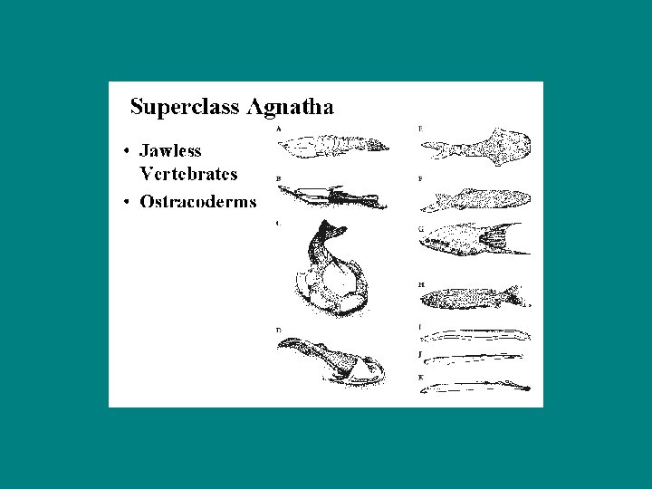 Material of the internal skeleton Old view – since cartilage replaced by bone, cart fish are older, gave rise to bony fish New view – Placoderms, with external bony armor and internal cartilage, arise from Agnatha – Both bony and cartilagenous fish arise from placoderms