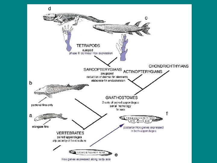 Note fleshy fin types: Symmetrical = lungfish Assymetrical = crossopterygians (extinct) And coelacanth – marine living