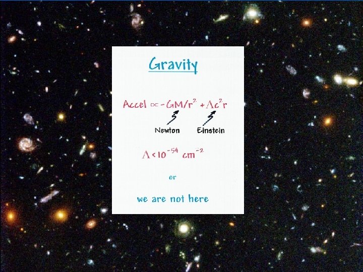 A Big Mystery Why isn’t 10+66 cm-2 We observe obs 10 -55 cm-2 ? ? No galaxies if > 10 -54 cm-2