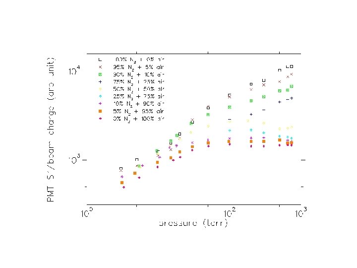 Life time vs Pressure (Air) from Nagano et al. (p. c. )-at. 85 Me. V • Air fluorescence lifetimes ~ 25 nsec • Bunner quotes lifetimes near 40 nsec • Large uncertainties remain.