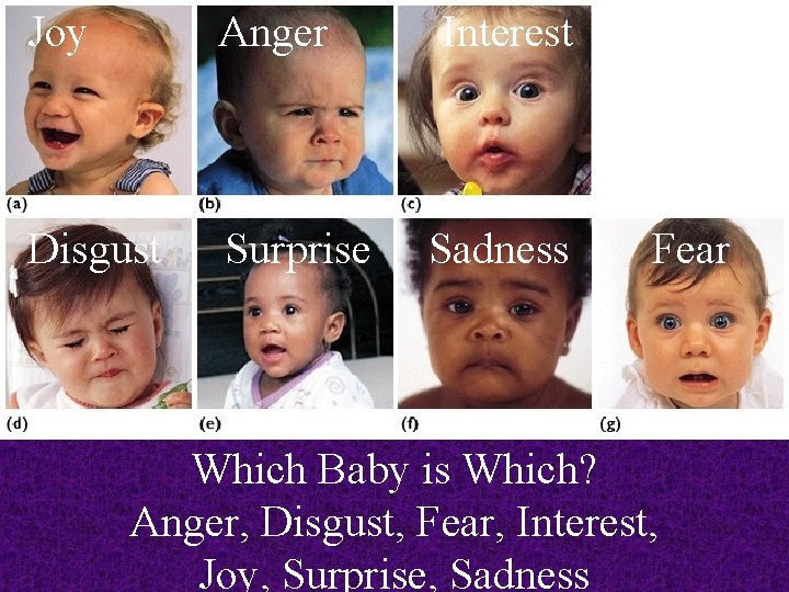 Joy Anger Interest Disgust Surprise Sadness Fear Which Baby is Which? Anger, Disgust, Fear, Interest, Joy, Surprise, Sadness
