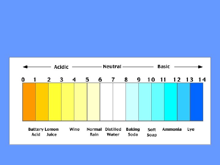 Acids • Strong Acids have a p. H of 1 -3 • Produce lots of H+ ions