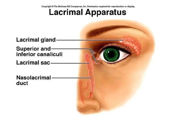 4. Conjunctiva – mucous membrane palpebral conjunctiva bulbar conjunctiva Eyelashes sebaceous ciliary glands at base of hair follicles – hordeolum or stye Lacrimal apparatus – forming and draining tears.
