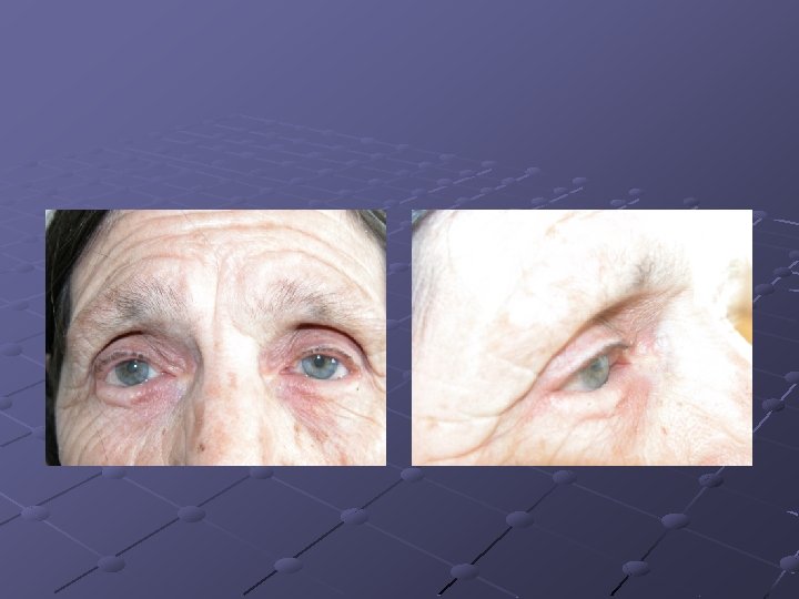 Dermatochalasis It is very common in elderly, The eye lids have baggy appearance with indistint lid creases. Treatment is blepharoplasty