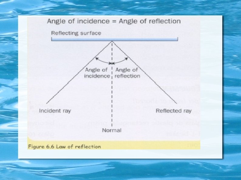 Reflection happens when light hits a different medium that causes it to bounce back into the medium that it came from. Laws of reflection 1. The angle of incidence is always equal to the angle of reflection. 2. The incident ray and the reflected ray are always on the same plane.