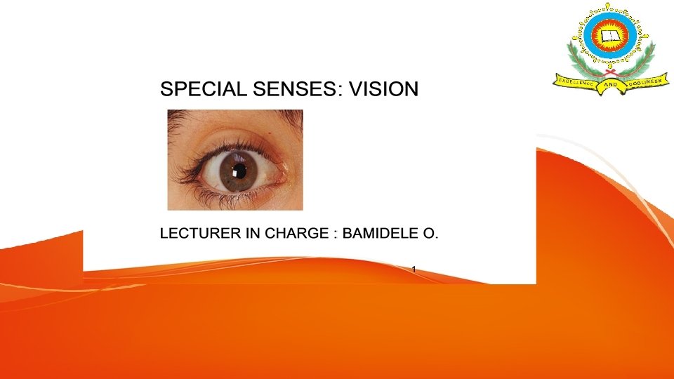 THE EYES AND VISION • Vision is the dominant sense in humans • 70% of sensory receptors in humans are in the eyes • 40% of the cerebral cortex is involved in processing visual information • The eye (or eyeball) is the visual organ – It is globe shaped with diameter 2. 5 cm (1 inch) – It is slightly flattened from above downwards – Its anterior part is small and forms 1/6 of the eye ball while it posterior part is large and forms 5/6 of the eye ball. – Lies in bony orbit