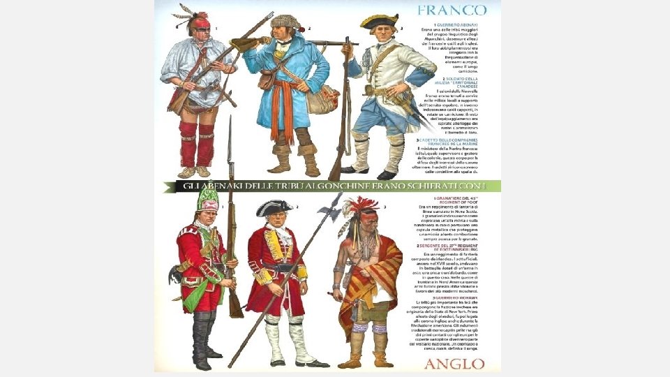 WAR, WAR NEVER CHANGES For most of New France’s history, conflict was almost constantly happening There were the early conflicts involving the Algonkians, Montagnais, and Huron during Champlain’s time and the conflict with the Iroquois later on Soon, New France became involved in wars between European nations First was King William’s War in 1689 -1697, where Britain tried to stop French expansion in North America The War of the Spanish Succession took place in 1704 -1713, and resulted in Acadia, part of New France coming under British control