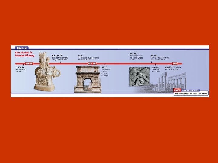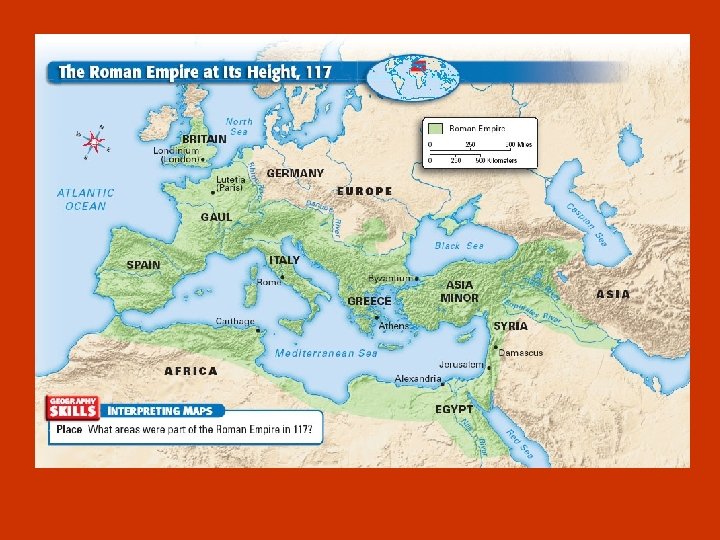 Leadership and laws helped the Romans in building the empire. • Rome grew from a tiny village to a huge city. – Home to more than a million people • The territories Rome controlled formed one of the largest states the world had ever seen. – Territories surrounded the Mediterranean Sea. • The Roman Empire was ruled by emperors. • Roman citizens understood their laws and had protected rights.