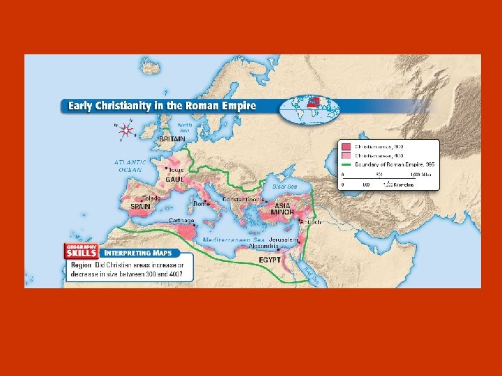 Christianity spread quickly throughout the Roman world. By the 300 s most of Rome’s population was Christian. Church leaders became major figures in Roman society.