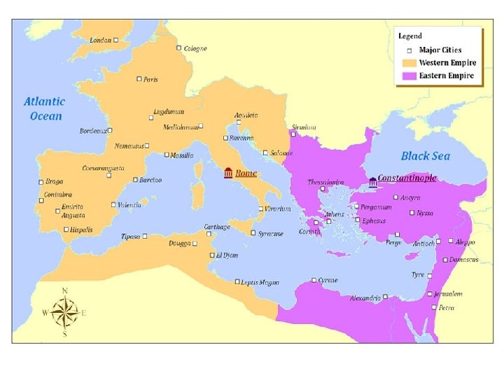 An Empire No More • Last Emperor of Rome: Romulus Augustulus – 14 years old – Ousted by German forces in 476 • Power gone in the Western half • Eastern portion took a new name: The Byzantine Empire – Survived and flourished – Preserved Greek and Roman culture for another 1000 years – Ruled Constantinople – Lasted until 1453 - fell to the Ottoman Turks