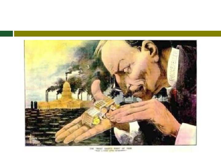 The Fat Cats… Setting the Stage 1. a. b. c. d. e. Also known as Captains of Industry, Industrial Giants, and Robber Barons Wealth fell into the hands of a few By 1890 – 4, 000 millionaires Approximately 90% of & (wealth and assets) controlled by 10% of the population 1900 = 20 million Americans lived in poverty (very small middle class)