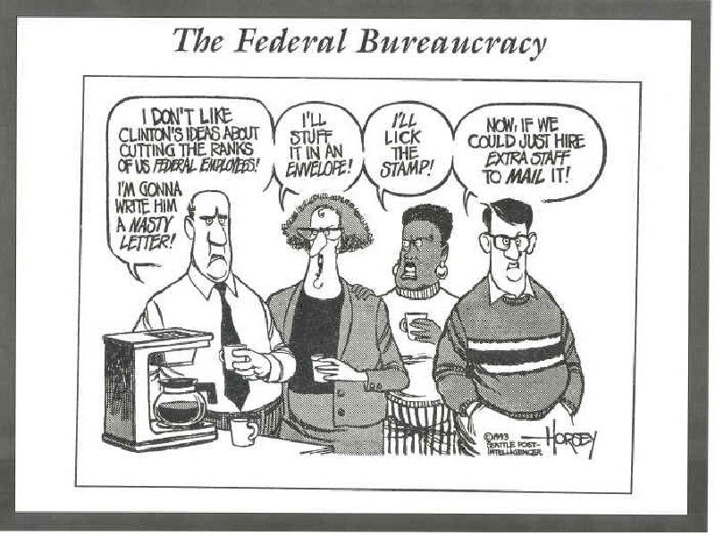 NPR • Found the bureaucracy was too centralized – Too rule bound – Too little concern with making programs work – Too much concerned with scandal • ALWAYS C. Y. A… • Bureaucracy is tied to gov’t problems