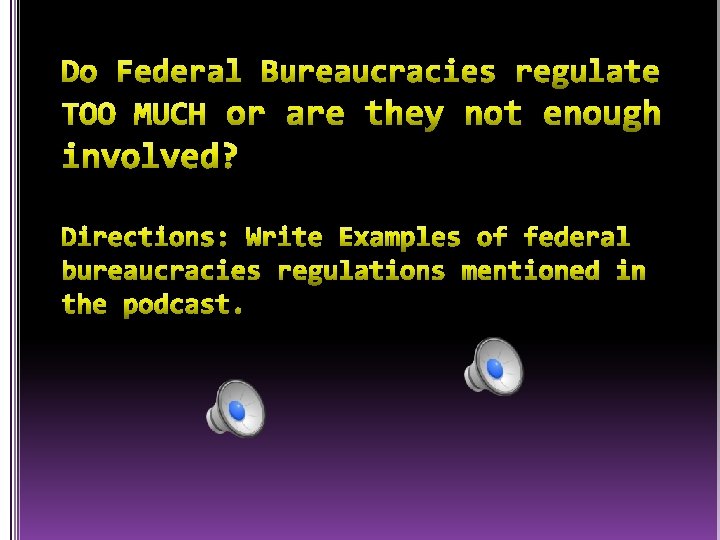 Independent Regulatory Agencies and Commissions Regulate almost every aspect of everyday life for most Americans. Make rules for specific areas of business or the economy and other areas that effect public interest. Each is directed by five to ten presidential appointees. Each agency or commission is usually balanced with members of both major political parties. They operate independently. Examples: �Interstate Commerce Commission �Federal Trade Commission �Securities & Exchange Commission �Federal Reserve Board �National Labor Relations Board