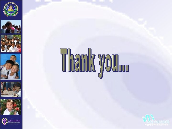 National initiatives against Child Labour • • • • The National Committee is made up of: Minister of Labour and Social Security Minister of Education Minister of Public Health and Social Assistance Minister of the Interior Minister de Agriculture and Livestock Minister of Economy Minister of Foreign Relations A representative of the National Secretariat of the Family A representative of the National Youth Secretariat Director of the Salvadorean Institute for Integral Development of Children and Adolescents (ISNA). The vice-presidents of the labour sector and employer sector of the National Superior Labour Council A representative of the non-governmental organisations belonging to the Board of ISNA El Executive Director of the National Commission of Small and Medium-Sized Enterprise (CONAMYPE).