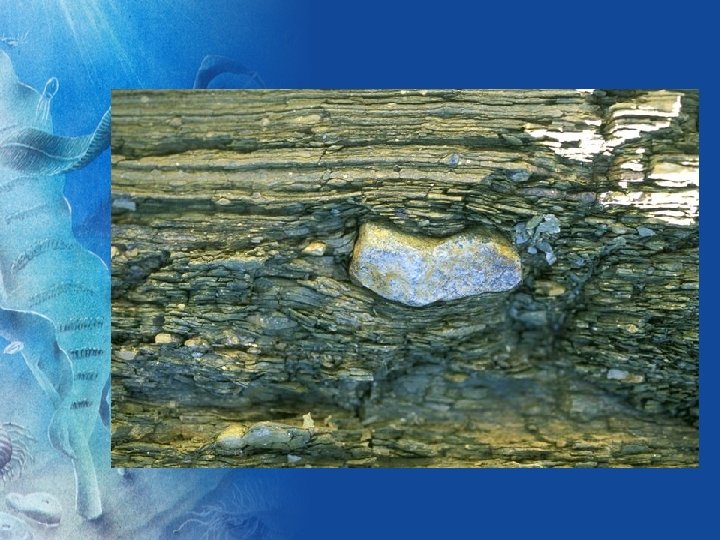 • FOSSILIFEROUS BEDS: clay/sand interface, storm beds (downslope avalanches) • FOSSIL TYPES: body fossils and trace fossils (trails, tracks and burrows) • PRESERVATION MODE: imprints, 3 D casts and moulds, pyrite crust (“death masks”), organic material