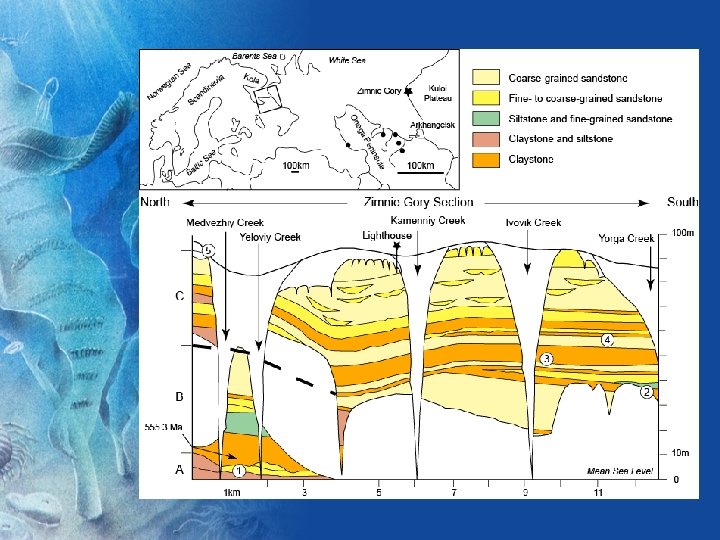 THE VENDIAN FAUNAS OF THE WHITE SEA REGION, NORTHERN RUSSIA • AGE: over 551 -555 or older million years, U-Pb radiometric dating of zircon crystals from volcanic ash beds • LOCATION: about 1000 km north from Moscow, S-SE coast of the White Sea