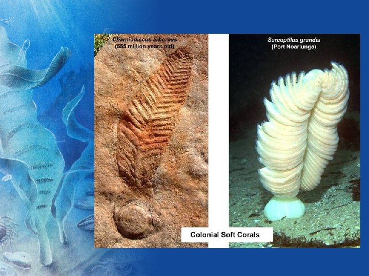 NAMIBIAN FAUNA (542. 68 +/- 1. 25 to 547. 32 +/- 0. 65 Ma) • Some of Youngest of these first animals - Ediacara Animals • Possibilities of Precise Dating Due to Abundance of Ashes • Dominated by Pteridinids • Preservation Exquisite