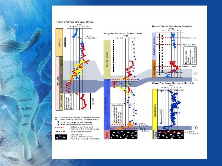 WHERE ARE THE OLDEST ANIMALIA FOUND? • ? Glacier National Park, Montana, USA (@1. 5 billion years) • Doushantuo, Yangtze Gorges, China (@580 million, perhaps older) • Newfoundland (575 +/- 1 million) • Saudi Arabia – new discoveries (569. 0 +/- 3. 0 million) White Sea Region, Russia (555. 3 +/-0. 65 to 551. 1 +/- 0. 7 million) • Flinders Ranges, South Australia – dating controversial • Namibia, Southwest Africa (547. 32+/- 0. 65 to 542. 68 +/- 1. 25 million)