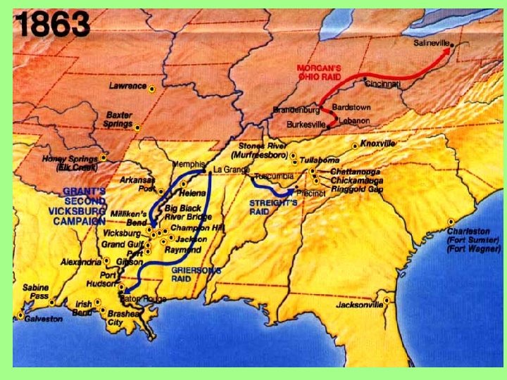 Significance: The turning point of the war. After success at Fredericksburg and Chancellorsville, Lee invades the North again. After trying to break the Union lines for 2 days, Lee tries a frontal assault on entrenched Union forces. This was known as Pickett’s charge. This attempt failed miserably. Lee ultimately retreats to Virginia. This would be the last chance for the South to win the war and threaten the North. Deadliest battle of the war.