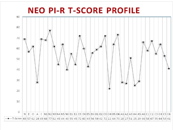 Three Instruments Used to Measure • The Beginnings: the Neuroticism-Extraversion. Openness Personality Inventory (Costa and Mc. Crae in 1978 • Leads directly to the NEO P I-R • NEO PI-R characteristics Lets take a look at an example of a NEO PI-R Actual Profile!