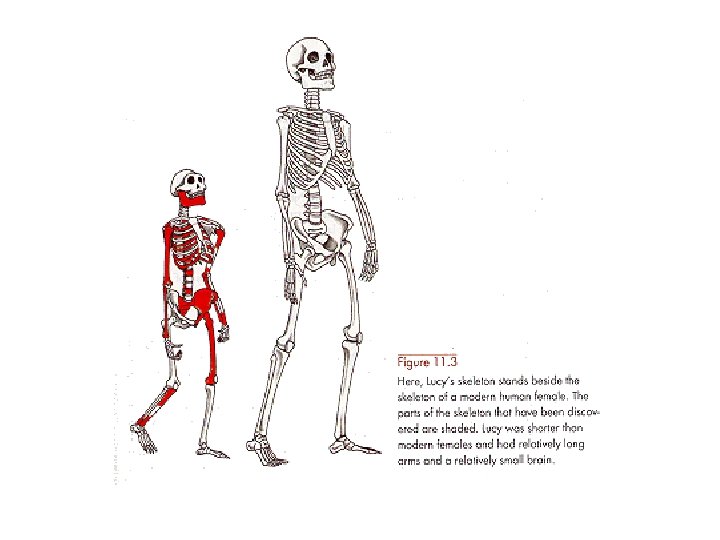 Australopithecus afarensis • First discovered in Hadar in the Afar Region, Ethiopia by Donald Johanson in 1974. • He named the discovery ‘Lucy’ after the Beatles’ song “Lucy in the Sky With Diamonds. ” She dates to approx. 3. 2 mya. • Afarensis accounts for most of the early hominid fossils found and dates from 4 – 3 mya. • Smaller, yet pronounced canines and broad incisors resemble chimp. • Definitely not arboreal, based on weight projections; but they probably were good climbers. • More pronounced prognathism. • Brain case larger, but cranium has chimp features (broad at base). • Think fully erect, 3. 5 – 5 foot tall bipedal chimp.