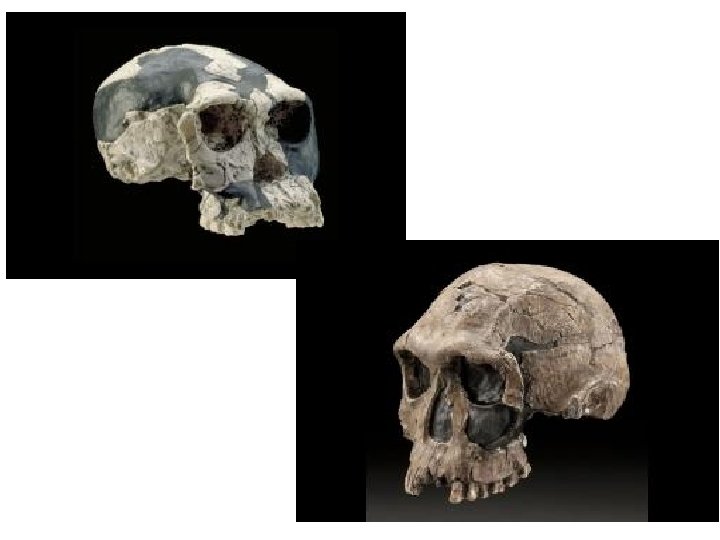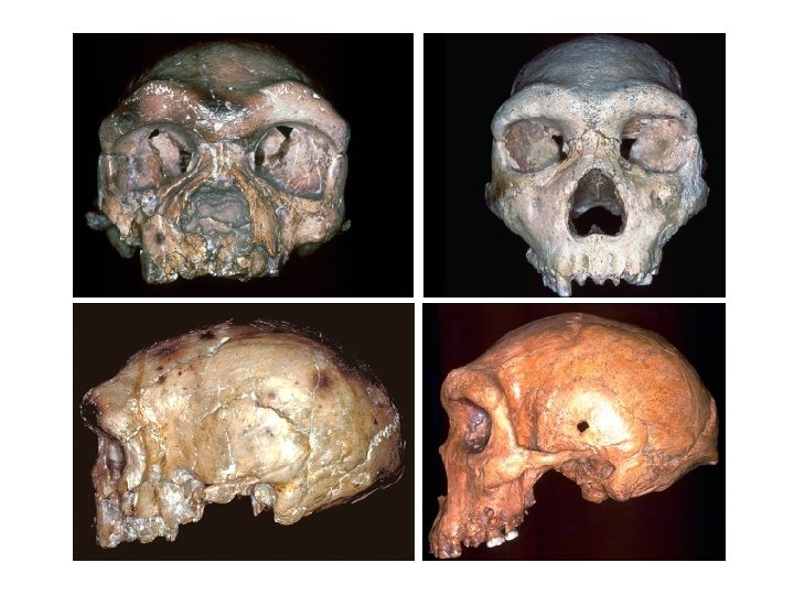 Archaic Homo sapiens and Neanderthals • Neanderthals appear around 200, 000 ya and die out around 30, 000 ya in Europe and Eurasia • Extremely robust features (brow ridge, cranial capacity, lower limbs); prognathic face and chinless jaws with massive teeth • Squatty appearance conserves body heat in harsh climate of the last glaciation (Ice Age) • Neanderthals did not possess a fully modern vocal tract, and probably did not completely converse as Homo sapiens (evidence is inconclusive)