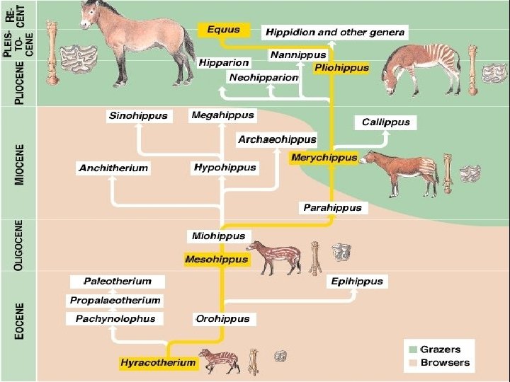 The Horse “The horse is a well-documented case study in evolution. The fossil record shows clear steps in the progression from a four-toed, small browsing animal - one of a line that gave rise to tapirs, rhinoceroses, and other mammals in addition to horses - to the modern horse, …” "Evolutionary History of the Modern Horse, " Microsoft® Encarta® Encyclopedia 2000. © 1993 -1999 Microsoft Corporation.