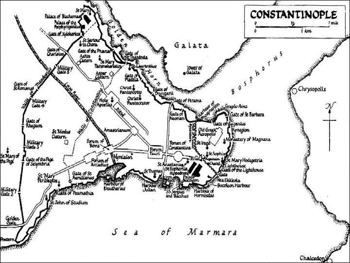 New Capital n During the Tetrarchy of 305, the four capitals were Trier, Milan, Thessaloniki, and Nicomedia. n In 330, Constantine established his new capital in the NW corner of Asia Minor and called it Constantinople (at Byzantium). Indeed, he left Rome in 324 never to return. n It was built on seven hills (like Rome) with a forum, hippodrome, Senate and its people received subsidized grain and paid no taxes. Unlike Rome, it was a Christian capital with few traces of paganism. n He also began the construction of a church in the city which would become known as the Hagia Sophia. 2/3 of the world’s wealth was said to be in Constantinople (originally name “New Rome”).