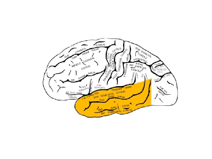 Temporal Lobe Functions Left Temporal Lobe • • • Ability to combine input into patterns Ability to perceive two objects or two attributes of a single object at the same time Ability to read or recognize numbers, or visually process symbolic stimuli Ability to remember verbal material presented visually Ability to name colours Perception of acoustic intensity Integration of auditory & visual information Memory functions for verbal stimuli Comprehension of visual-verbal symbolic Using words to name objects Ability to discriminate between different sounds Right Temporal Lobe • • • Recognition of objects from incomplete picture Ability to recognize anomalies in picture Identification of meaningless visual patterns Visuo-spatial abstract reasoning Recognition of rhythmic patterns – pitch & rhythm Discrimination of tonal patterns & familiar melodies Ability to localize oneself in space by means of visual cues Ability to recognize faces Ability to perceive spatial relations Auditory perception, Emotional Stability, Orientation in time & Space, Ability to form new memories, Ability to recognize olfactory stimuli