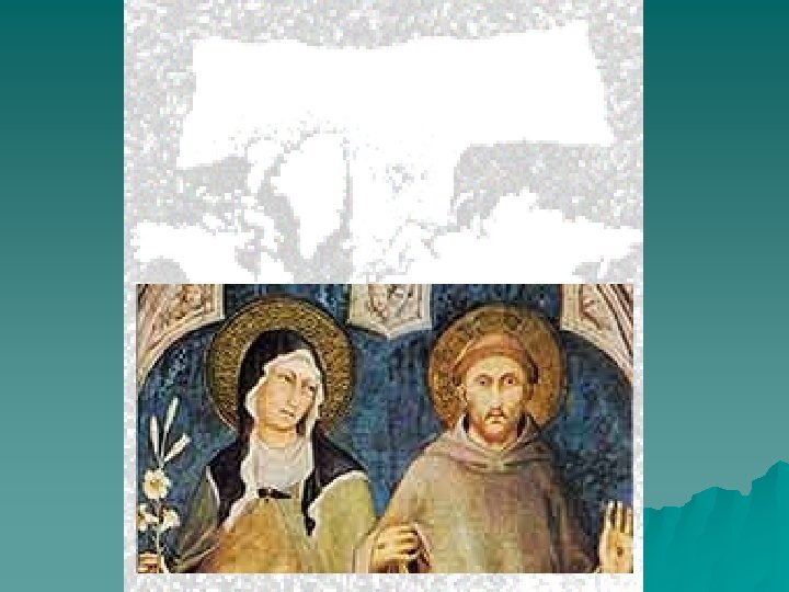 Clare of Assisi u u The second founding figure who adopts this new spiritual outlook right from the beginning is Clare of Assisi. She has a clear sense of her own spirituality, even before she meets Francis. Clare belonged to the “majores“, the noble class; Francis was a member of the “minores“, although he was the son of a merchant. For these Sisters Minor, as they were initially known, for The Poor Ladies of San Damiano, as they were then called officially, Francis wrote a Rule of Life. Clare adopted it into the text of her own Rule. Until this time this type of life was unknown in the Church and asked for a different kind of lifestyle. After a life-long fight with the Roman Curia Clare finally achieved her ideal to live the Franciscan way of life. She produced her own Rule – as the first woman in Church history.