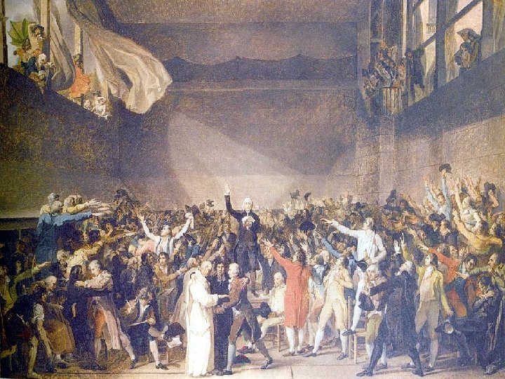 The National Assembly l l l Third Estate wanted voting reform = 1 vote per delegate, instead of 1 vote per estate. Louis XVI and nobles refused. Declared themselves the National Assembly The Tennis Court Oath: “vow to never separate” until they had drawn up a new constitution
