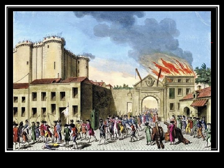 Rumors that Louis would use force to end the National Assembly n Storming of the Bastille (prison) n n n Searching for gunpowder Took over the prison Paraded the streets with dead guards heads on pikes Bastille Day (like French 4 th of July)